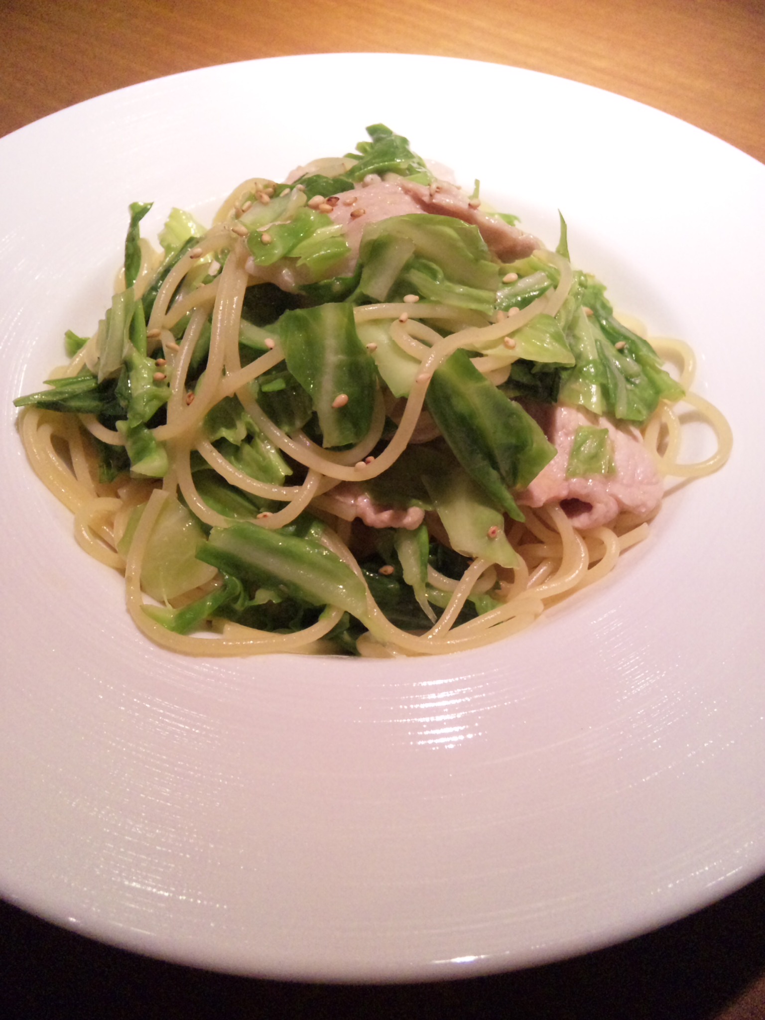 「豚ロースと冬キャベツの柚子こしょうパスタ」です。